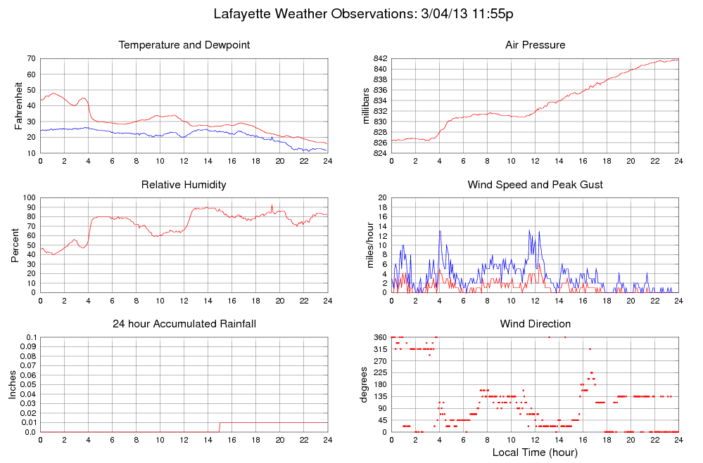 Dewpoint (F) 11.8 11.1 @ 22:25 26.3 @ 03:45 21.4
