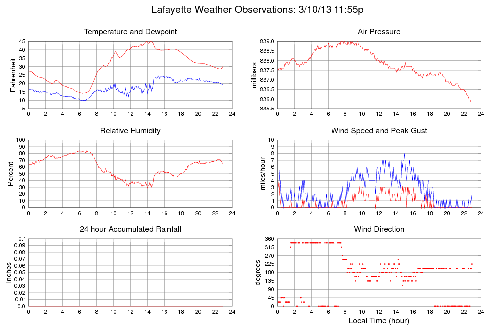 Temperature (F) 30.2 14.2 @ 06:20 45.0 @ 13:55 30.7