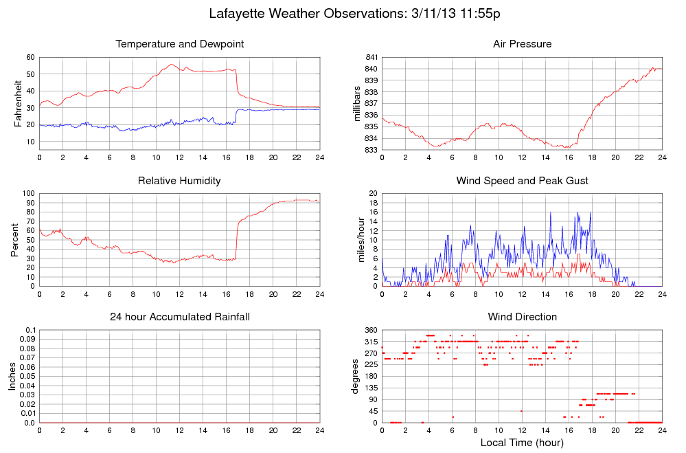 Temperature (F) 30.8 30.6 @ 22:35 55.8 @ 11:15 40.9