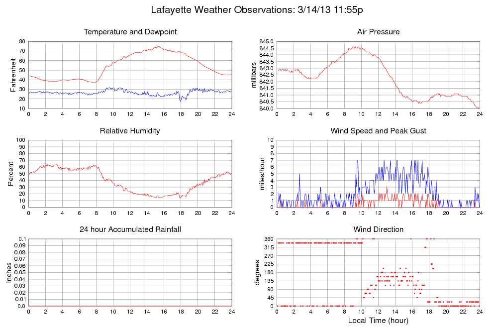 Temperature (F) 45.6 37.3 @ 07:30 74.9 @ 15:20 53.7