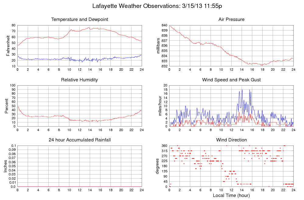 Temperature (F) 53.0 45.8 @ 00:05 76.2 @ 13:40 63.6
