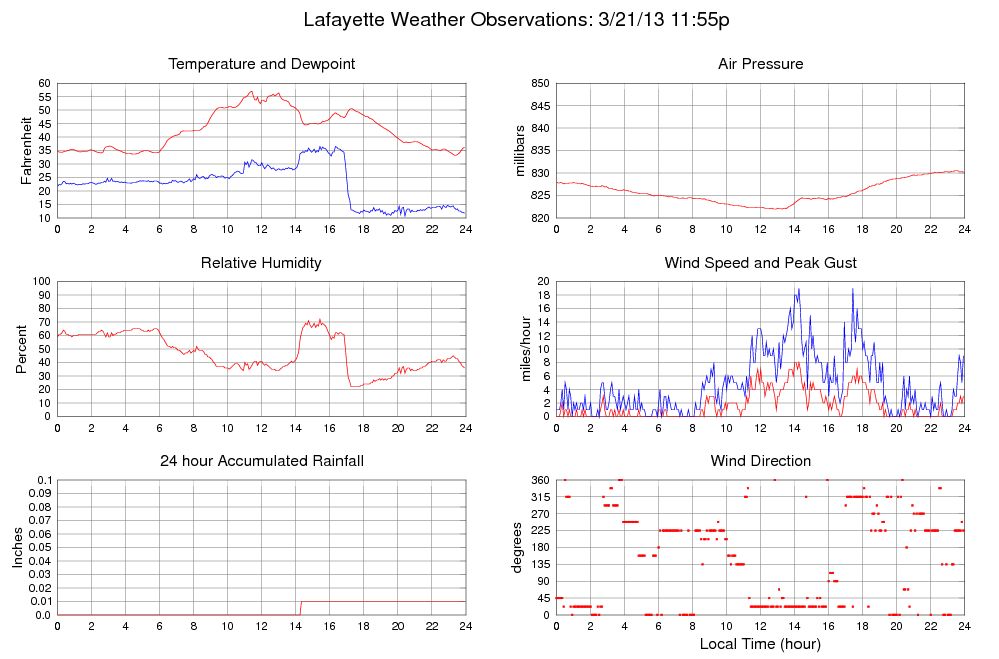 Temperature (F) 36.2 33.3 @ 23:20 57.0 @ 11:25 42.5