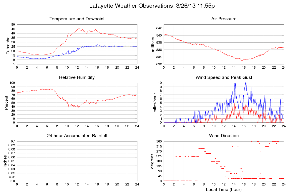 Dewpoint (F) 24.9 11.0 @ 04:30 27.1 @ 16:05 19.6
