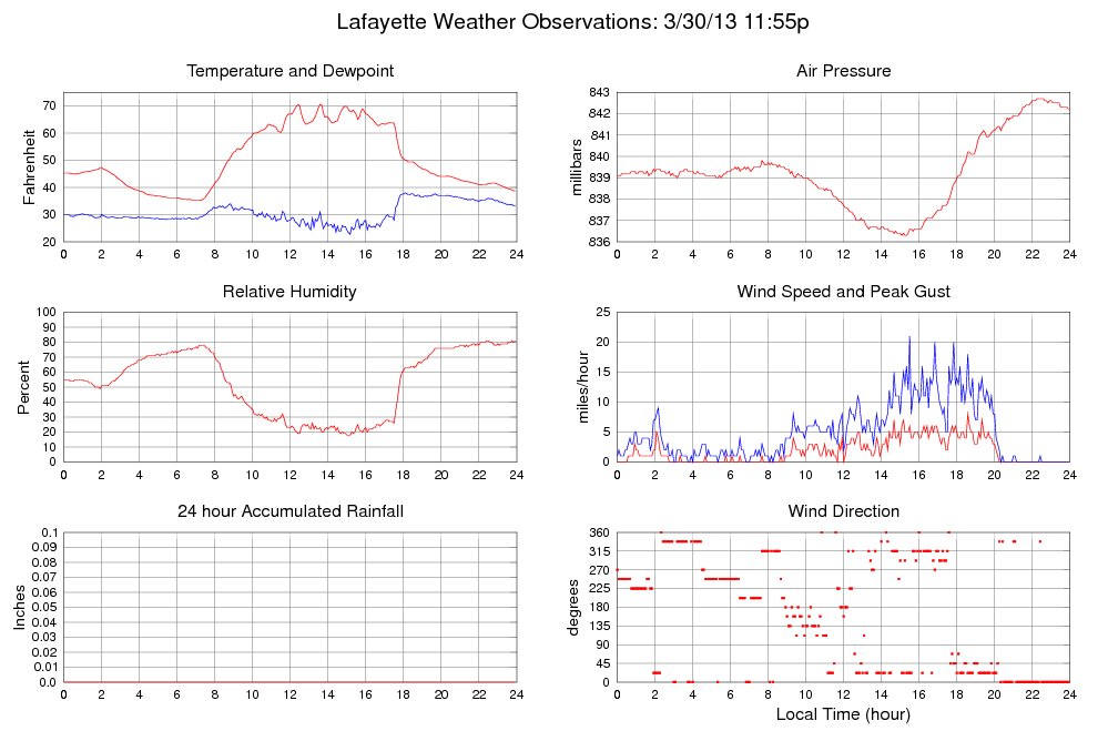Temperature (F) 38.7 35.2 @ 07:00 70.6 @ 13:35 50.2