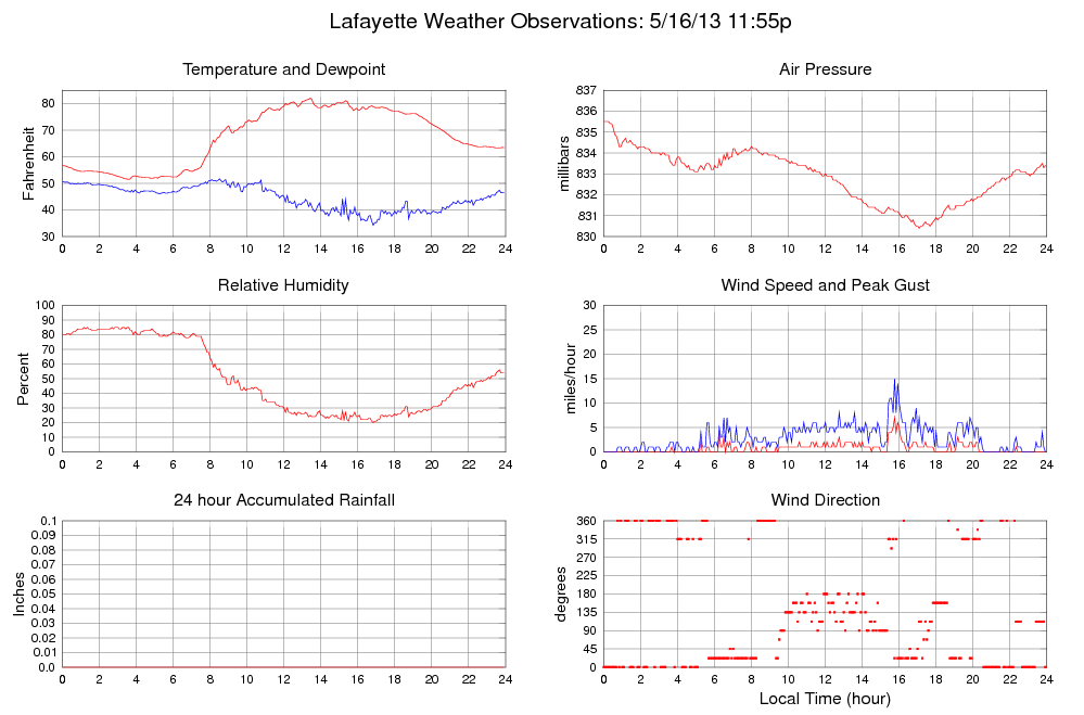 Temperature (F) 63.4 51.5 @ 03:35 82.0 @ 13:25 67.2