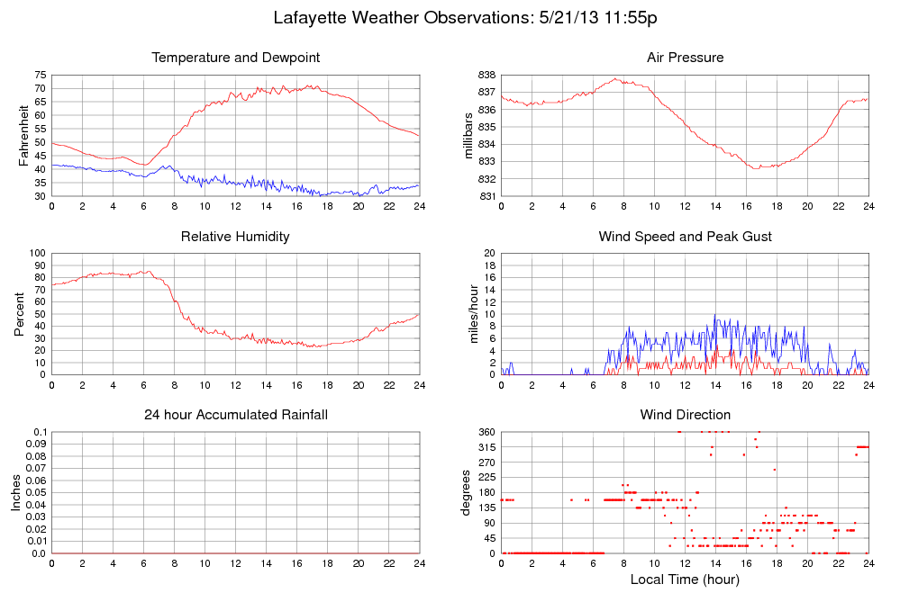 Wind Speed (mph) 0.0 0.0 @ 00:00 5.0 @ 14:05 0.9