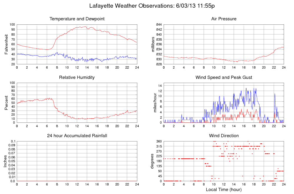 Temperature (F) 64.0 49.4 @ 05:55 96.0 @ 13:40 73.5