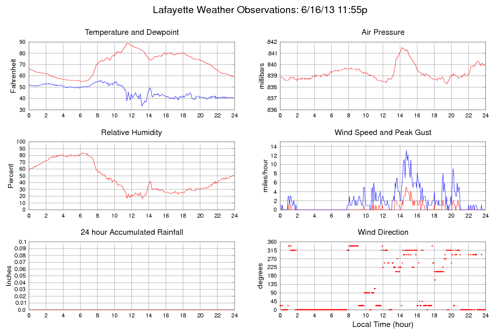 Temperature (F) 59.0 55.2 @ 06:05 88.6 @ 11:25 70.3