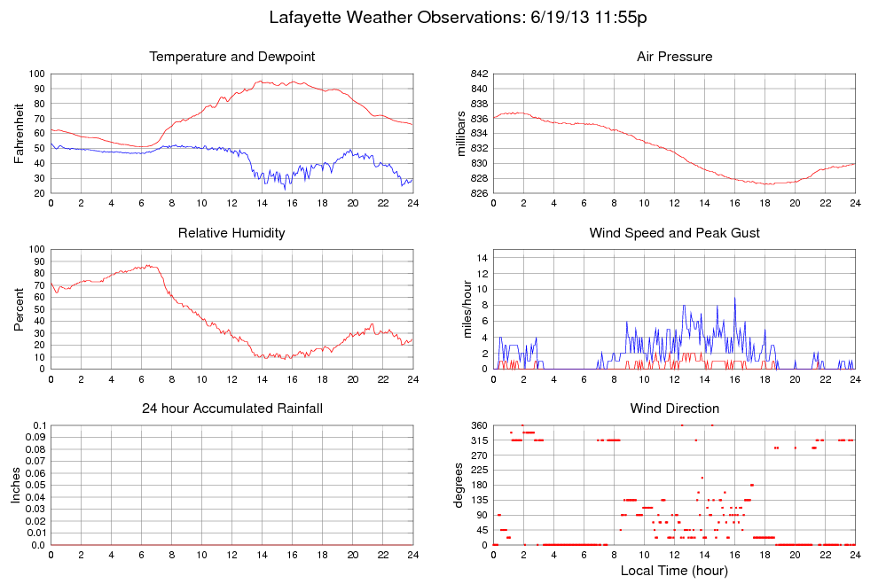 Temperature (F) 66.0 51.2 @ 05:55 95.0 @ 13:55 73.5