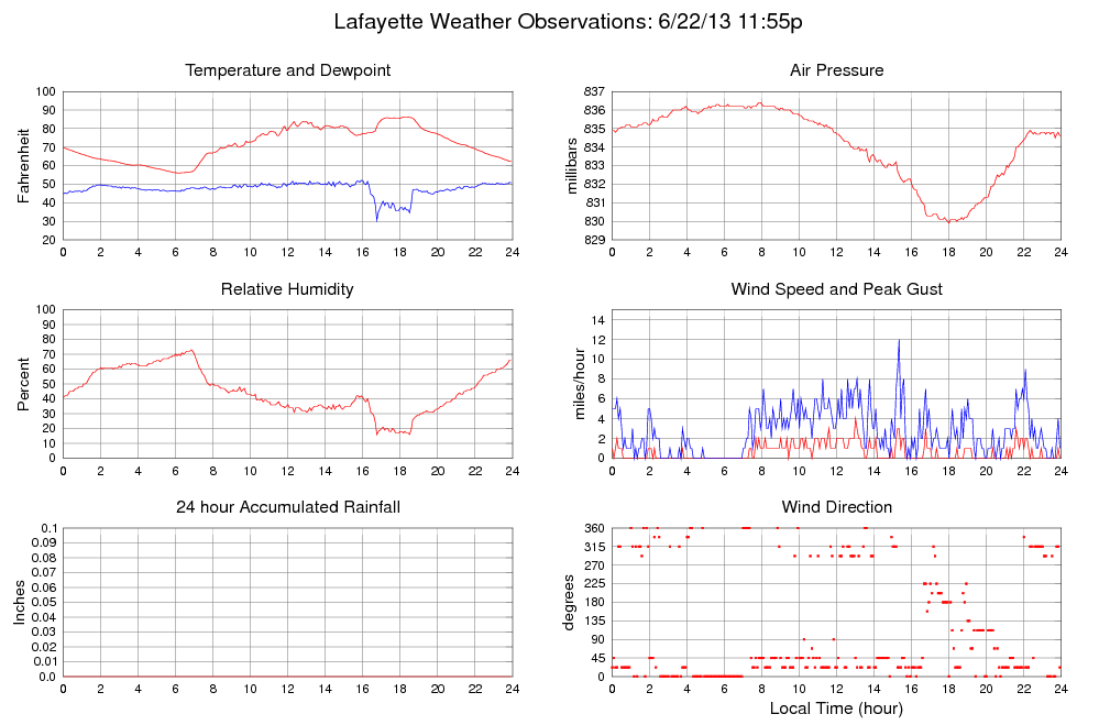 Wind Speed (mph) 0.0 0.0 @ 00:05 4.0 @ 13:00 0.6