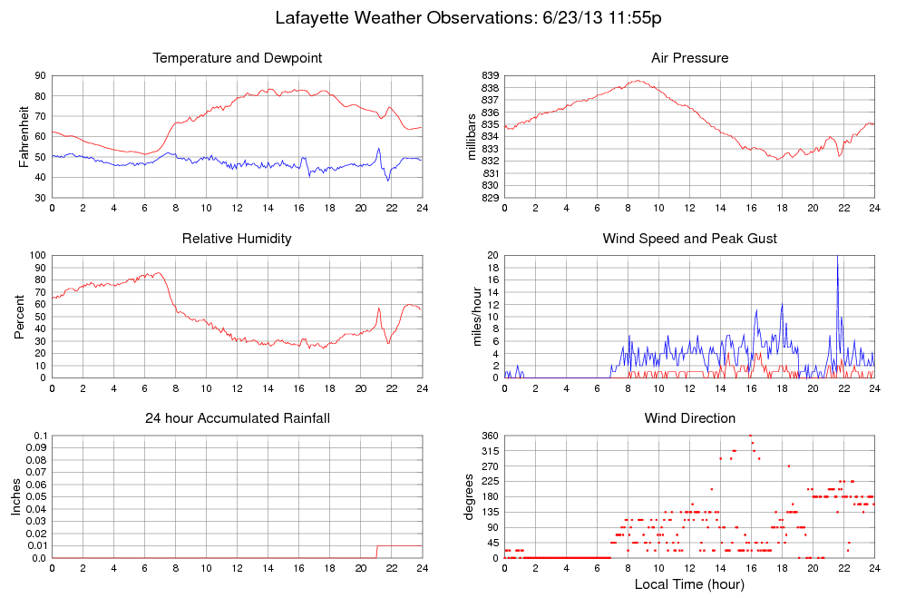 Temperature (F) 64.6 51.3 @ 06:00 83.4 @ 14:05 69.0