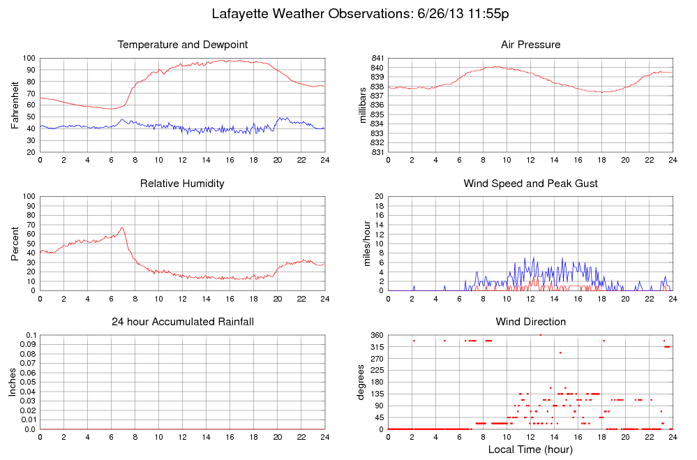 Temperature (F) 76.0 56.8 @ 05:45 98.2 @ 15:10 80.2