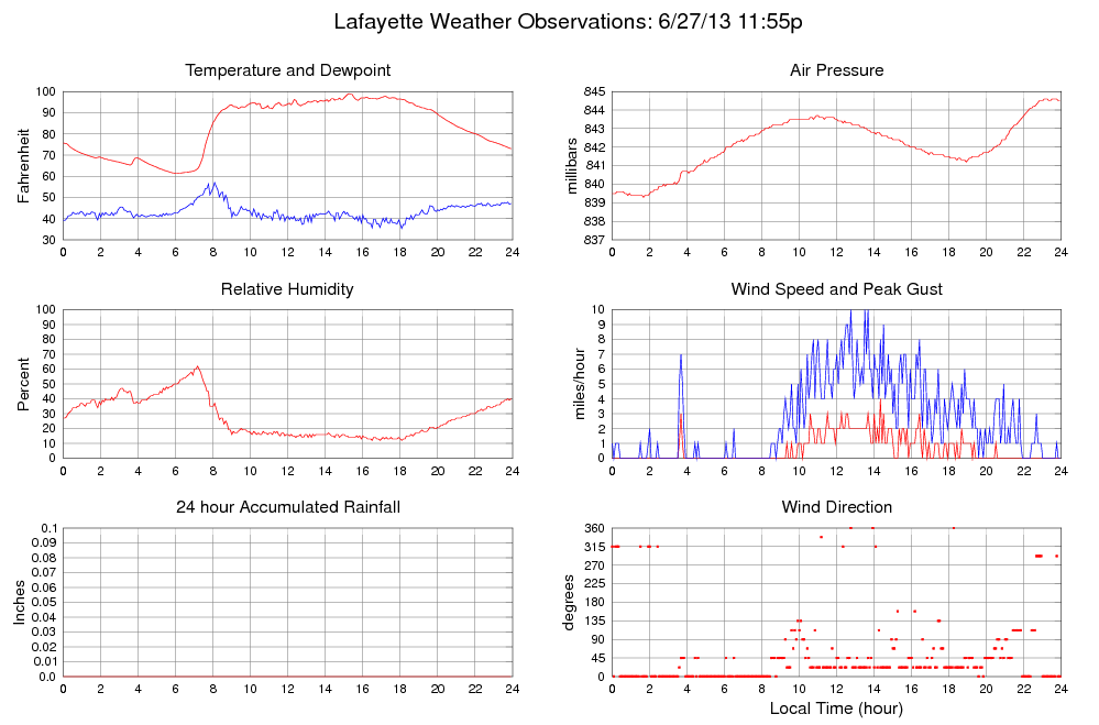 Temperature (F) 73.0 61.4 @ 06:00 99.0 @ 15:15 83.1