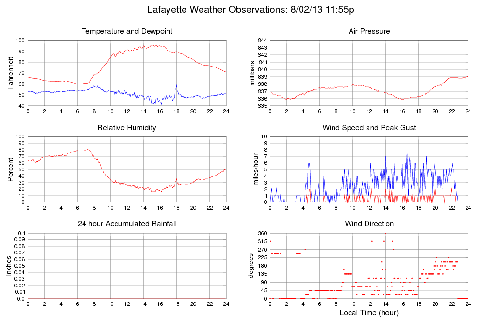 Temperature (F) 71.2 59.9 @ 06:15 96.1 @ 14:55 77.6
