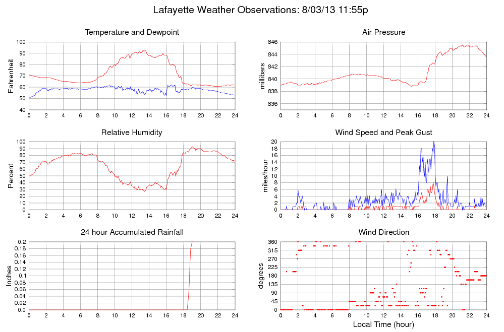 Temperature (F) 62.0 60.6 @ 21:45 92.3 @ 13:15 72.0