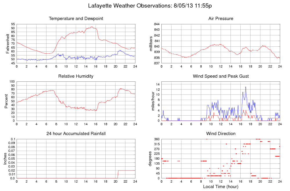 Temperature (F) 64.0 57.3 @ 05:50 91.7 @ 15:05 72.0
