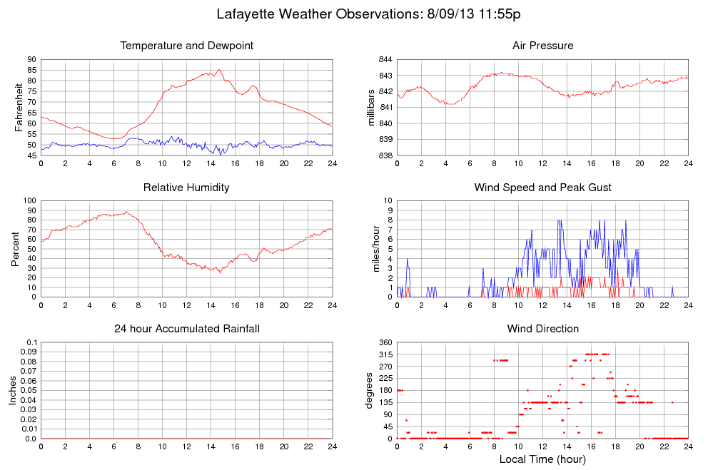 Temperature (F) 58.7 52.8 @ 05:50 85.2 @ 14:40 67.2
