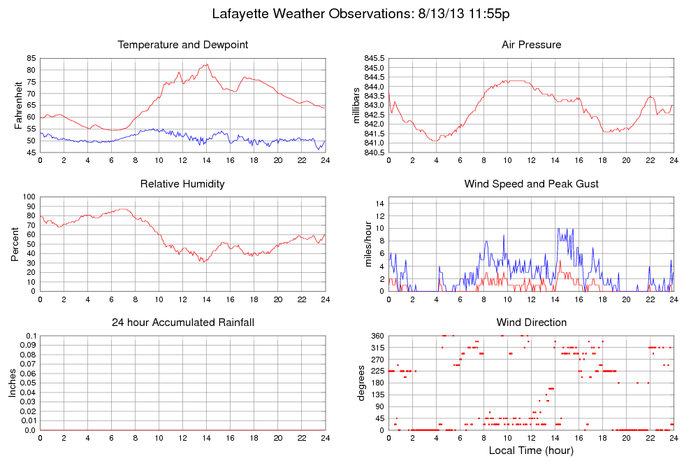 Temperature (F) 63.9 54.4 @ 06:00 82.4 @ 14:05 66.8