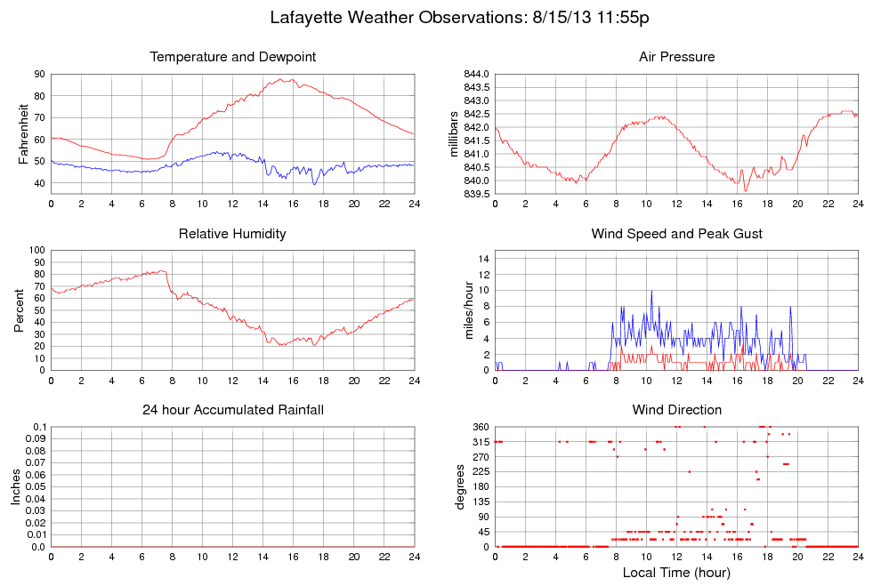 Temperature (F) 62.5 50.9 @ 06:20 87.7 @ 15:05 68.5