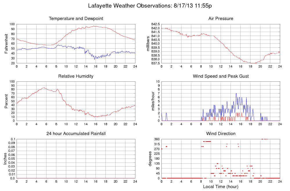 Temperature (F) 67.6 57.0 @ 06:00 96.3 @ 15:35 76.1