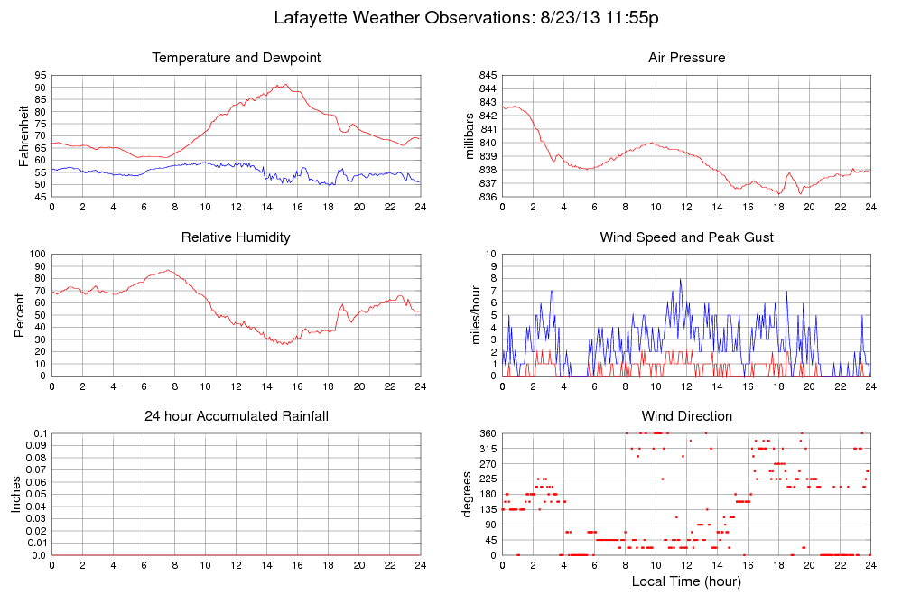 Temperature (F) 68.8 61.2 @ 05:35 91.2 @ 15:15 72.6
