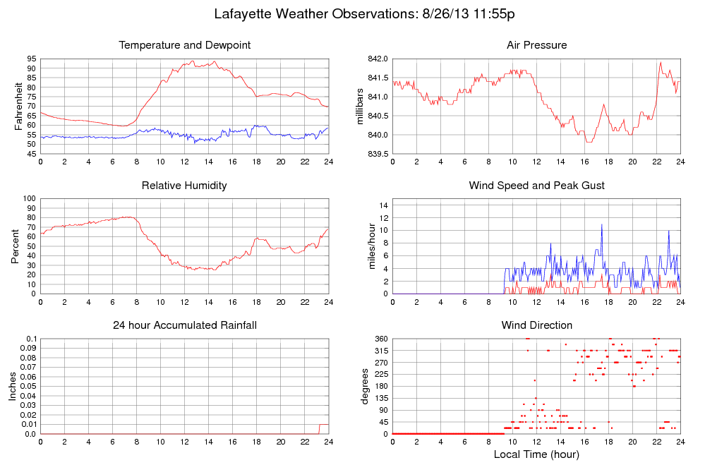 Temperature (F) 69.6 59.5 @ 06:45 93.9 @ 12:40 74.8