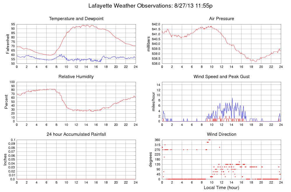Temperature (F) 70.4 59.5 @ 06:35 94.0 @ 13:20 77.1