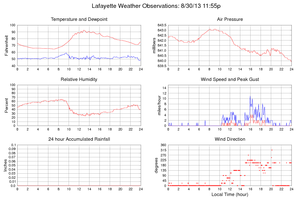 Temperature (F) 75.0 64.8 @ 06:55 92.5 @ 12:55 76.1