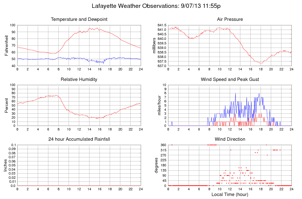 Temperature (F) 66.1 57.9 @ 06:50 95.8 @ 15:30 75.7