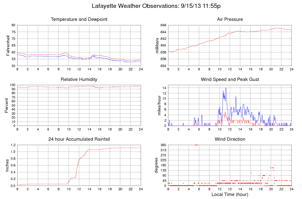 Peak Gust Speed (mph) 0.0 0.0 @ 00:05 14.0 @ 11:10 2.2