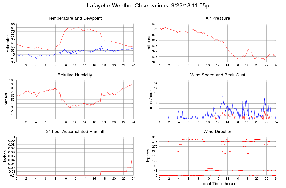 Dewpoint (F) 52.4 39.7 @ 04:05 56.3 @ 17:30 47.7