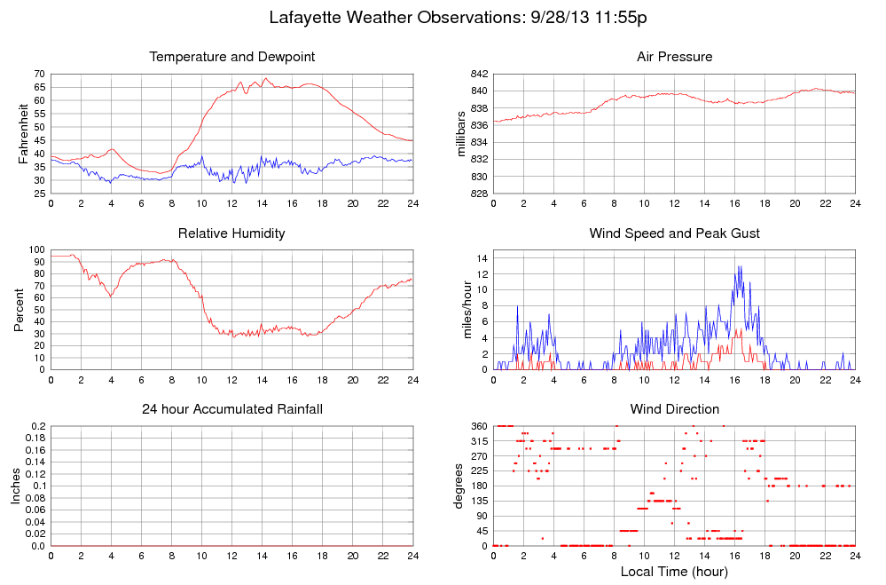 Temperature (F) 44.8 32.6 @ 07:10 68.4 @ 14:15 50.3
