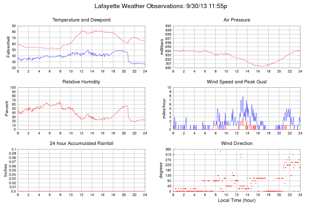 Temperature (F) 64.9 51.9 @ 07:40 82.3 @ 12:10 65.7