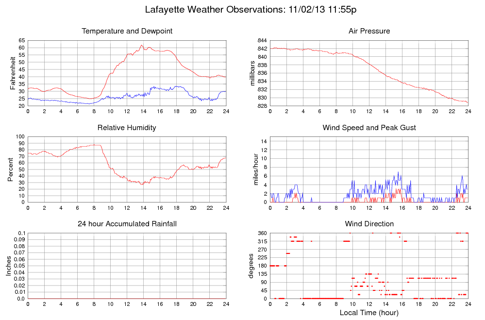 Temperature (F) 39.7 24.9 @ 07:25 61.8 @ 13:45 41.4