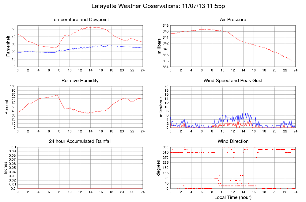 Temperature (F) 33.3 25.1 @ 07:10 53.0 @ 13:20 39.4