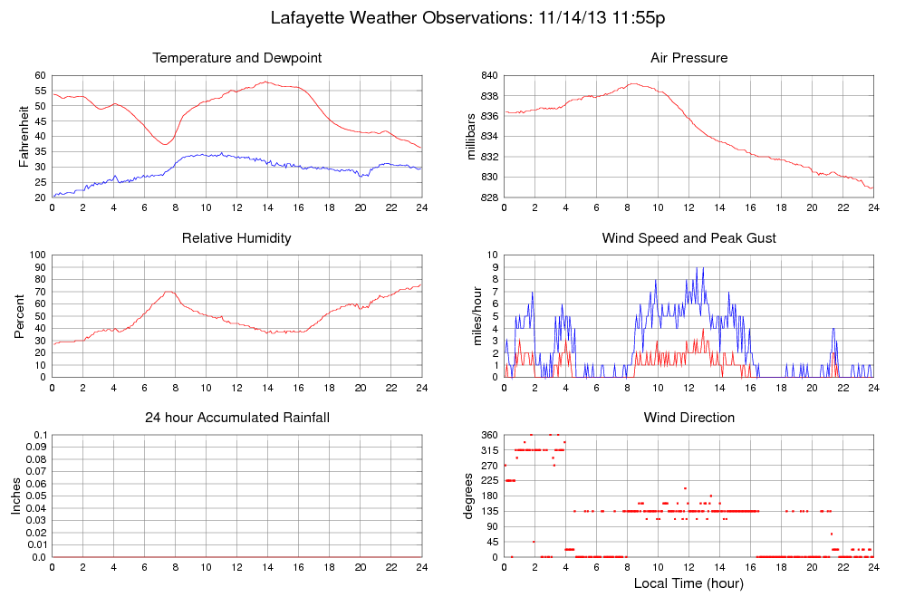 Temperature (F) 36.3 36.3 @ 23:55 58.0 @ 13:50 48.2