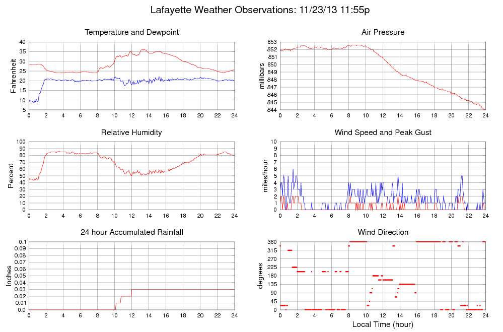 Temperature (F) 25.6 24.0 @ 03:45 36.3 @ 13:25 28.5