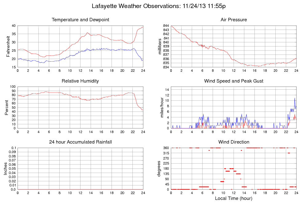 Temperature (F) 38.9 21.1 @ 05:00 39.1 @ 23:50 28.8