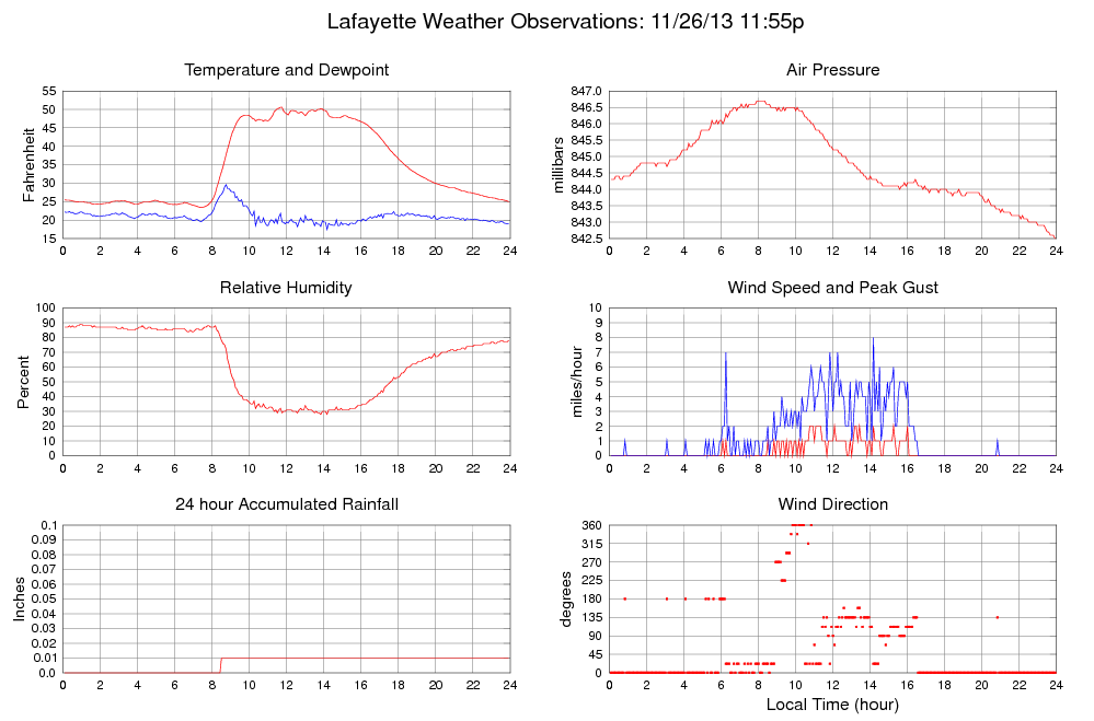 Temperature (F) 25.0 23.4 @ 07:25 50.6 @ 11:40 34.5