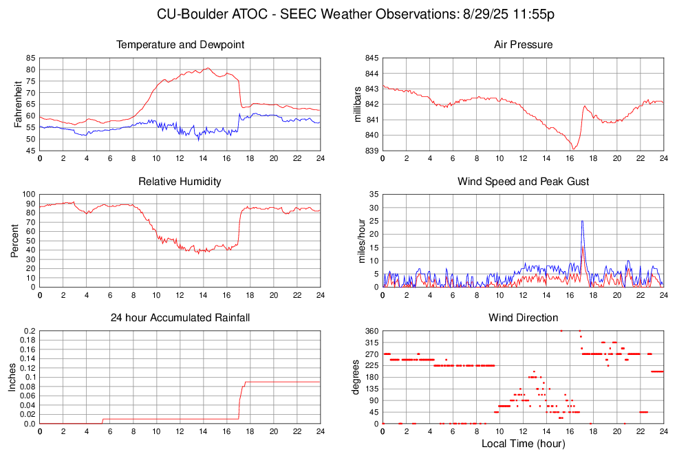 Dewpoint (F) 57.3 49.5 @ 13:35 61.1 @ 18:25 55.7