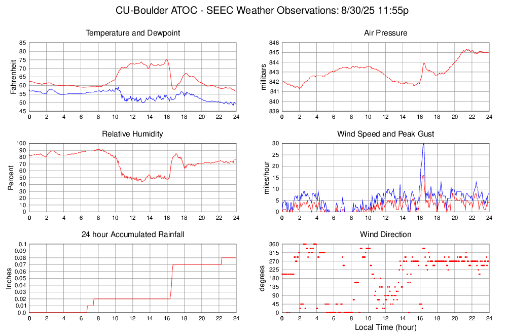 Temperature (F) 56.7 56.7 @ 23:55 75.1 @ 15:55 63.6