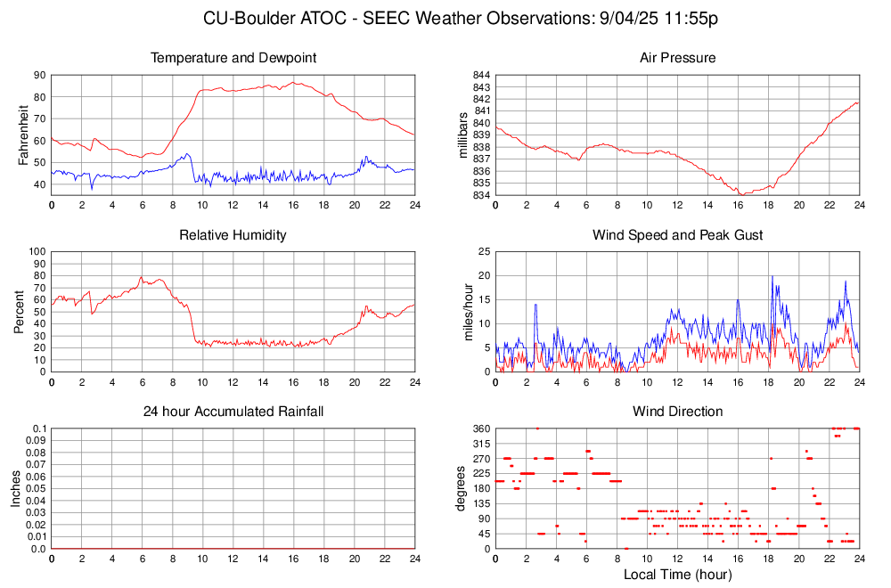 Temperature (F) 62.7 52.3 @ 05:50 86.7 @ 15:55 70.6