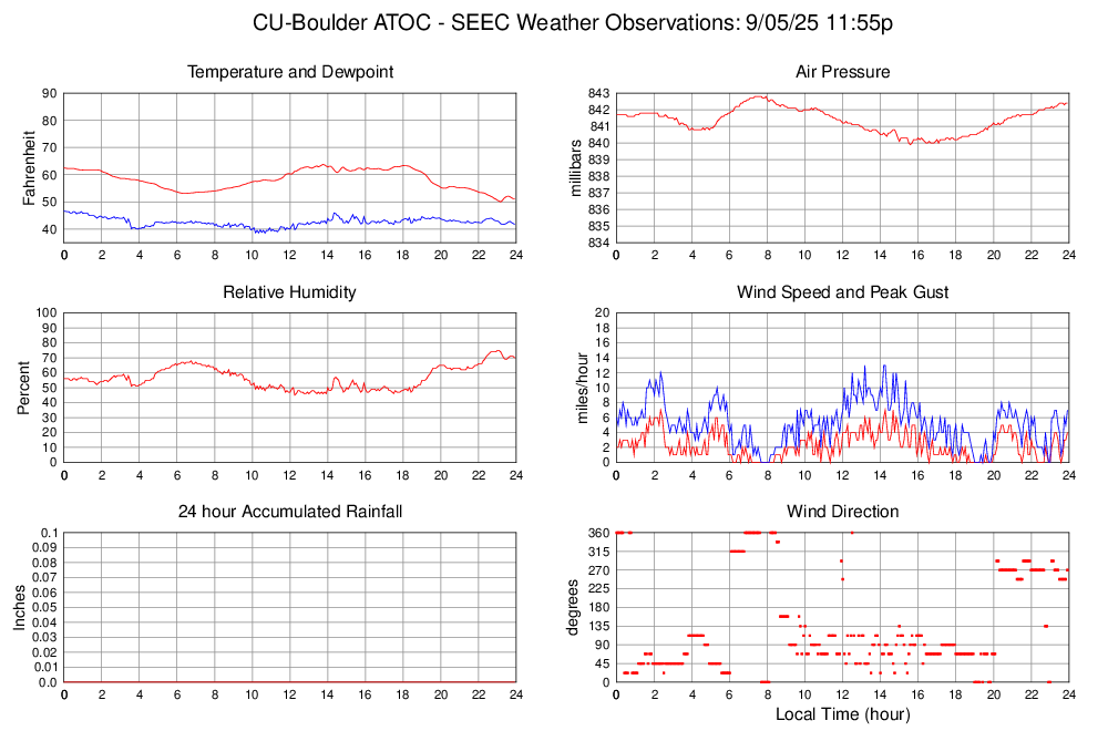 Temperature (F) 51.2 50.0 @ 23:10 63.8 @ 13:45 58.2