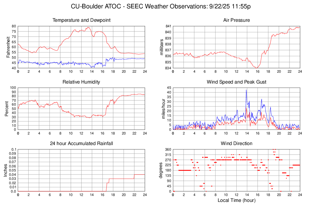 Temperature (F) 53.8 53.2 @ 22:45 79.0 @ 13:15 62.8