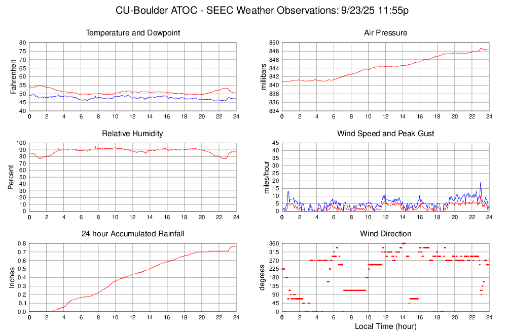 Dewpoint (F) 47.3 46.0 @ 22:15 49.5 @ 00:25 47.6