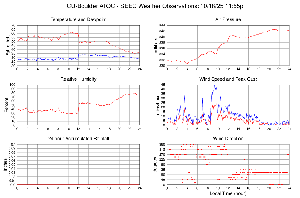 Temperature (F) 36.0 35.2 @ 23:00 61.2 @ 10:25 50.3