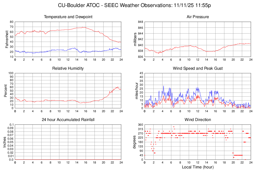 Temperature (F) 39.3 39.0 @ 23:25 69.3 @ 15:15 59.2