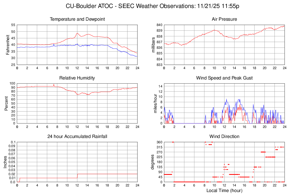 Dewpoint (F) 31.2 31.2 @ 23:55 40.8 @ 12:00 38.0