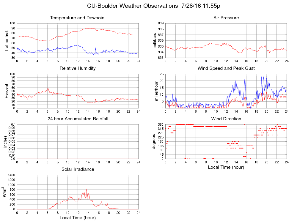 Temperature (F) 75.8 64.1 @ 06:00 90.1 @ 14:20 78.0