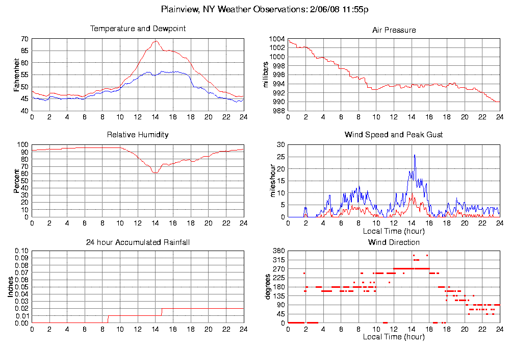 Dewpoint (F) 44.5 43.6 @ 23:10 56.6 @ 14:40 49.0